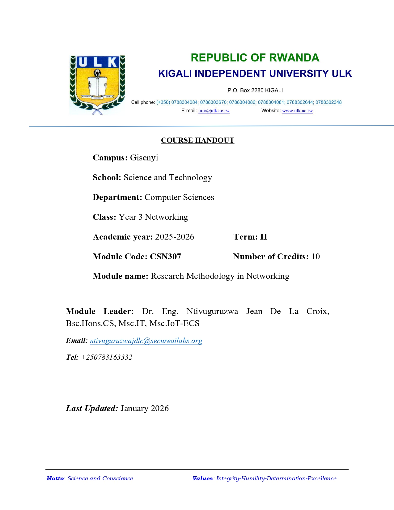 - Lecturer: Dr. Ntivuguruzwa Jean De La Croix